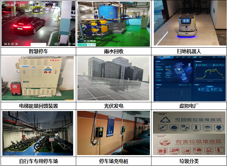 绿色技术:有害垃圾100%无害化处置、智慧停车引导系统、雨水回收、扫地机器人,虚拟电厂技术等;