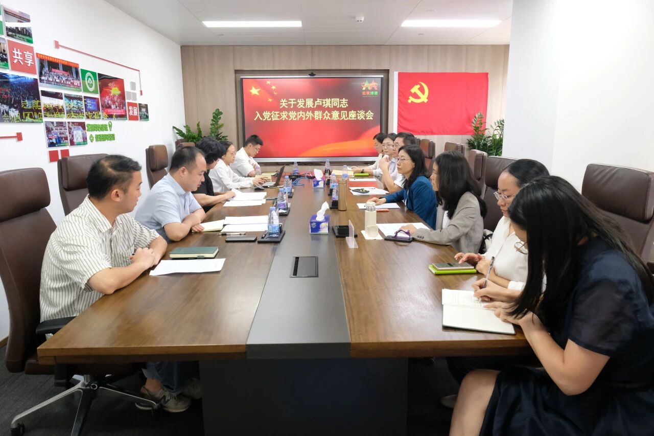 党员是党的肌体的细胞和党的活动的主体。发展党员工作是党的建设中一项常态化的重要任务,是党的建设新的伟大工程的一项基础工程,是党员队伍建设的重要组成部分。会上,召开“关于发展卢琪同志入党征求党内外群众意见座谈会”,支部组织委员刘刚同志汇报了入党积极份子卢琪同志的基本情况,并对其政治思想和工作表现等方面进行了点评。经广泛听取并征求党内外群众意见,与会党员和群众一致同意将卢琪同志列为发展对象。同时,希望该同志今后进一步加强党性修养,持续深化理论学习,不断提升自身素质,争取早日加入党组织。