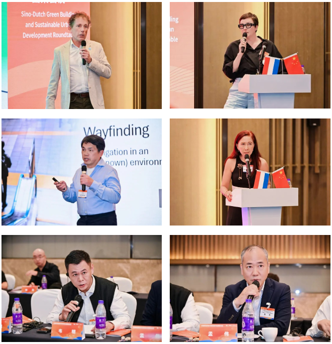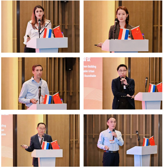本次圆桌会议的交流分为“可持续城市发展与更新”、“绿色建筑与智能建造”两个主题。中荷双方企业代表首先了介绍各自企业的基本情况、业务范围、项目案例等;随后,双方围绕相关主题下的政策标准、技术措施、发展趋势等内容进行交流与讨论。