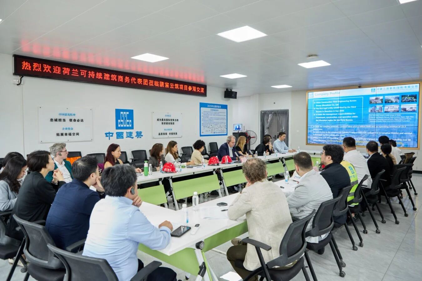 会前,荷兰可持续建筑环境商务代表团一行参观了我协会副会长单位中建三局集团(深圳)有限公司承建的智能建造项目“鹏宸云筑”。该项目作为中建三局在深圳首个摘牌、投资开发的住宅项目,促进企业迈向投资-建造-运营综合发展的“快车道”。项目整体推行精益建造、数字建造、智能建造,应用了住宅造楼机、游牧式钢筋智能钢筋生产线、塔机智能集控系统(5G塔机)、无人机AI安全智慧巡检技术、智慧工地等亮点技术,并联合中国建筑先进技术研究院建设高层建筑多轿厢循环运行电梯。项目作为高标准示范项目,助力打造中建三局深圳智能建造品牌,引领行业转型升级。