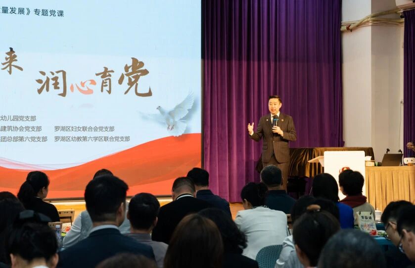 12月10日,一场别开生面的专题党课在深圳市第六幼儿园举行。深圳市绿色建筑协会党支部携手深圳市第六幼儿园党支部、中海企业集团总部第六党支部、罗湖区妇女联合会党支部及深圳市罗湖区幼教第六学区联合党支部,共同开展“声动未来,润心育党——‘以党建引领促进教学科研高质量发展’专题党课”活动。罗湖区妇联主席田林,深圳市绿色环保类行业协会联合党委副书记兼纪委书记玄甲有、组织员孙燕,清华大学建筑技术所党支部书记燕翔,深圳市绿色建筑协会党支部书记王向昱,深圳市第六幼儿园党支部书记张晓波,中海企业集团总部第六党支部宣传委员刘恋等党组织代表,以及各有关单位的党员代表、学生家长等共同参加活动。中共党员、中国绿色建筑与碳中和(香港)委员会秘书长、绿建科技顾问有限公司CEO张智栋主持活动。本次活动以 “以党建引领促进教学科研高质量发展” 为核心,融合前沿科学、基础教育与行业实践,奏响了一曲跨界创新的生动和鸣。