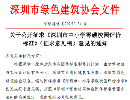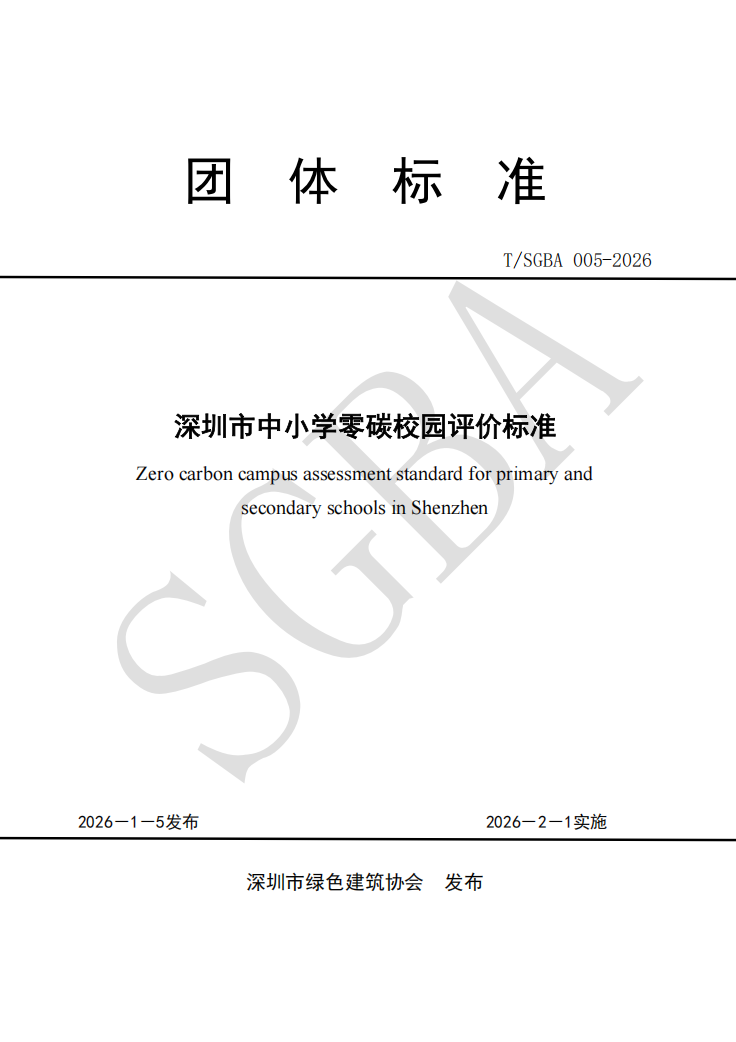 2026年1月5日,深圳市绿色建筑协会团体标准《深圳市中小学零碳校园评价标准》(简称《标准》)发布,并于2026年2月1日起正式实施。