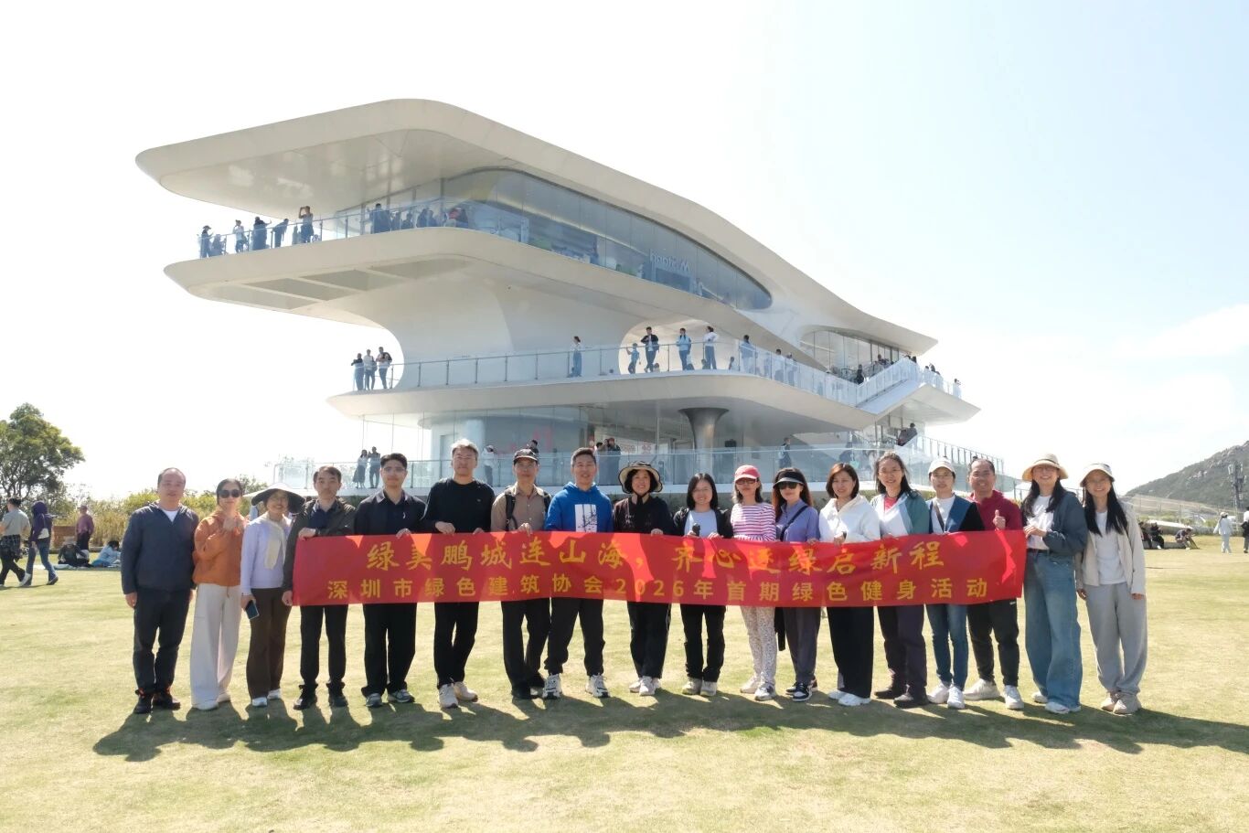 3月14日,深圳市绿色建筑协会2026年首期绿色健身活动圆满举行。本次活动以“绿美鹏城连山海,齐心逐绿启新程”为主题,组织协会会员代表与行业专家走进山海连城精品徒步路线“三洲塘水库—梅沙尖—云海驿站”,共赴一场与春日自然相拥的绿色之约。大家沿路攀登,登顶梅沙尖,饱览山海连城交融美景,在徒步中交流行业心得、共话发展机遇、增进彼此情谊。