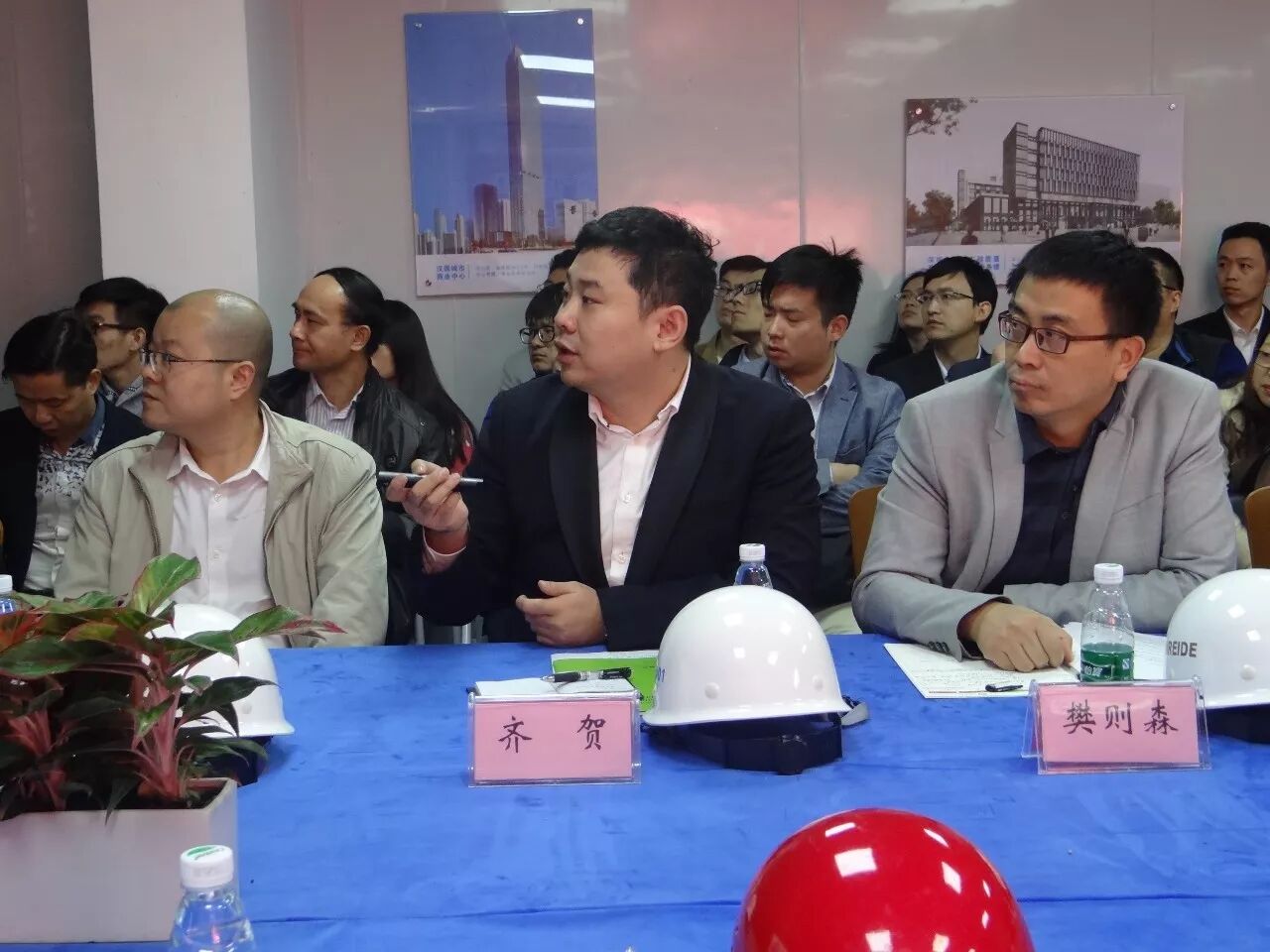 项目观摩结束后,企业代表们参加了技术、产品与项目的对接交流会,原定50人参加的会议挤满了近百人,简陋的会议室里洋溢着热情与温暖。深圳市住房和建设局高尔剑副局长、建设科技与工业化处刘轶群调研员(主持工作)、戴运祥调研员、市建设科技促进中心唐振忠副主任参加座谈;建设方中建二局一公司总经理王琦、中建科技总建筑师樊则森等陪同参观并参会,认真听取了企业代表的讲解。会议由深圳市绿色建筑协会王向昱秘书长主持。