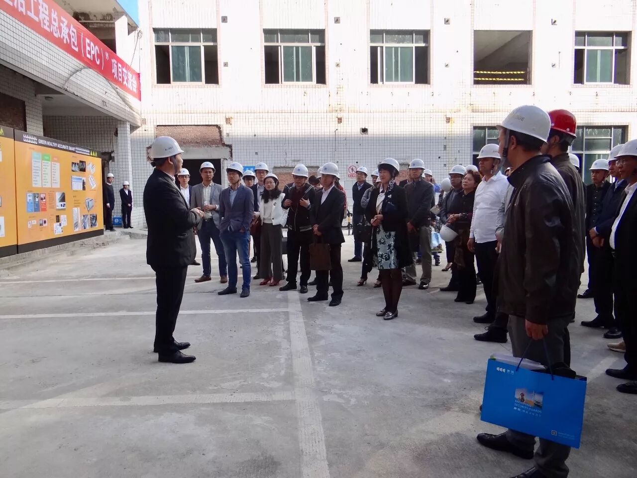 高效即是绿色,行业协会携手参展企业、会员单位迅速行动起来,11月21日高交会撤展,23日便组织了本次活动。上午九点观摩活动开始,企业代表前往施工现场,认真了解项目的建设情况和工程进度。通过项目技术负责人员的讲解,企业代表们了解到,该项目已经在框架结构改造和结构安全性上进行了技术创新,在未来的智能化管理上也运用了安全、能耗等方面的监控和服务体系,夯实了绿色化改造的基础,现在正迫切需要有更多的绿色建筑和建筑节能的技术和产品融入。