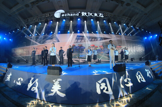 本次活动由深圳电视台主持人韩松,铁汉生态员工黎雯、李佳润、邓建喜主持,水鼓舞、沙画表演、生态走秀、年代歌曲串烧、小品、情景剧、拉丁舞、扇子舞、诗朗诵……一个个由铁汉员工自编自导自演的精彩节目引来了现场一次又一次的高潮。