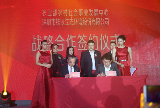 庆典上,国家农业部农村社会事业发展中心与铁汉生态达成了战略合作伙伴关系。农业部农村社会事业发展中心休闲农业处刘纪昌处长与刘水董事长现场签署了《战略合作协议》,双方将共同推进全国休闲农业与乡村旅游的发展,共同促进美丽乡村建设。