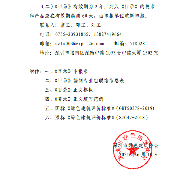 关于《深圳市绿色建筑适用技术与产品推广目录(2021版)》的申报通知