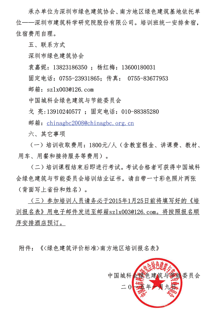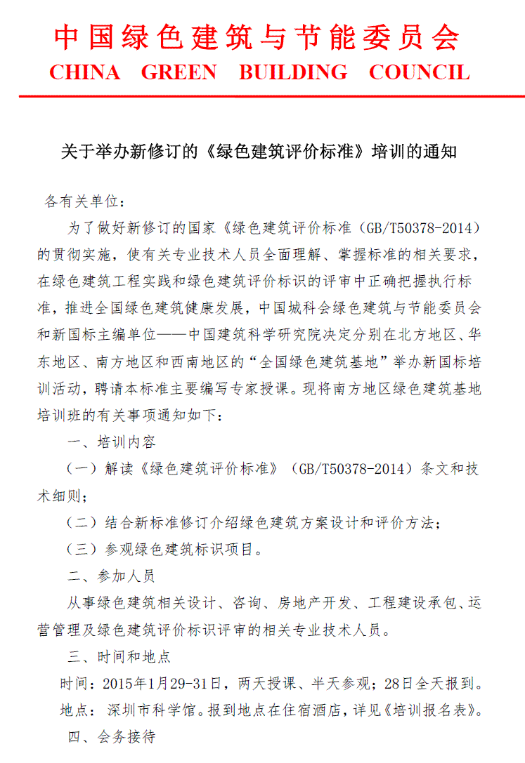 关于举办新修订的《绿色建筑评价标准》培训的通知
