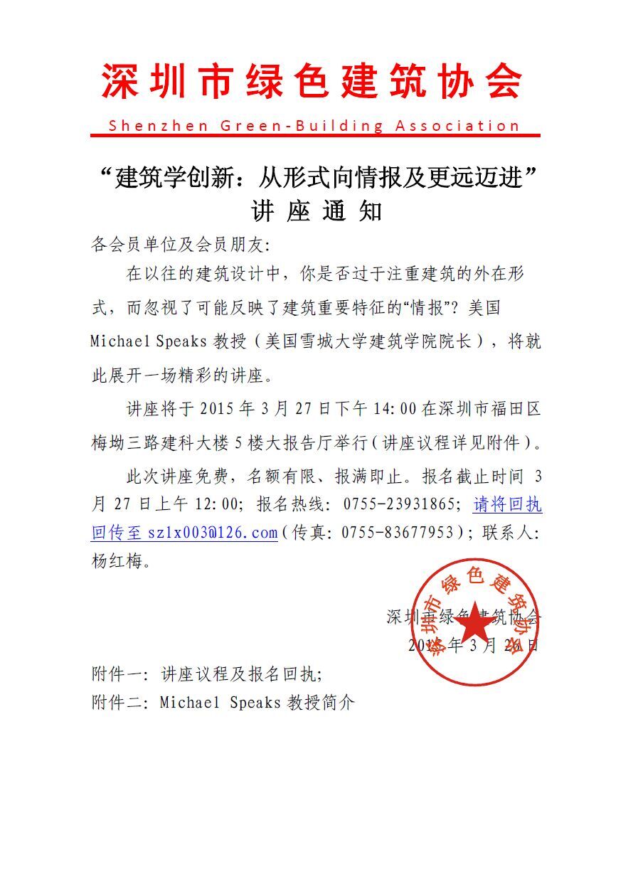 “建筑学创新:从形式向情报及更远迈进”讲座通知
