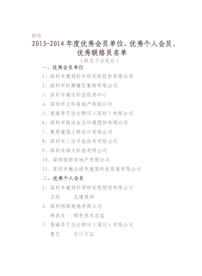 关于表彰“2013-2014年度深圳市绿色建筑协会优秀会员单位、优秀个人会员、优秀联络员”的决定