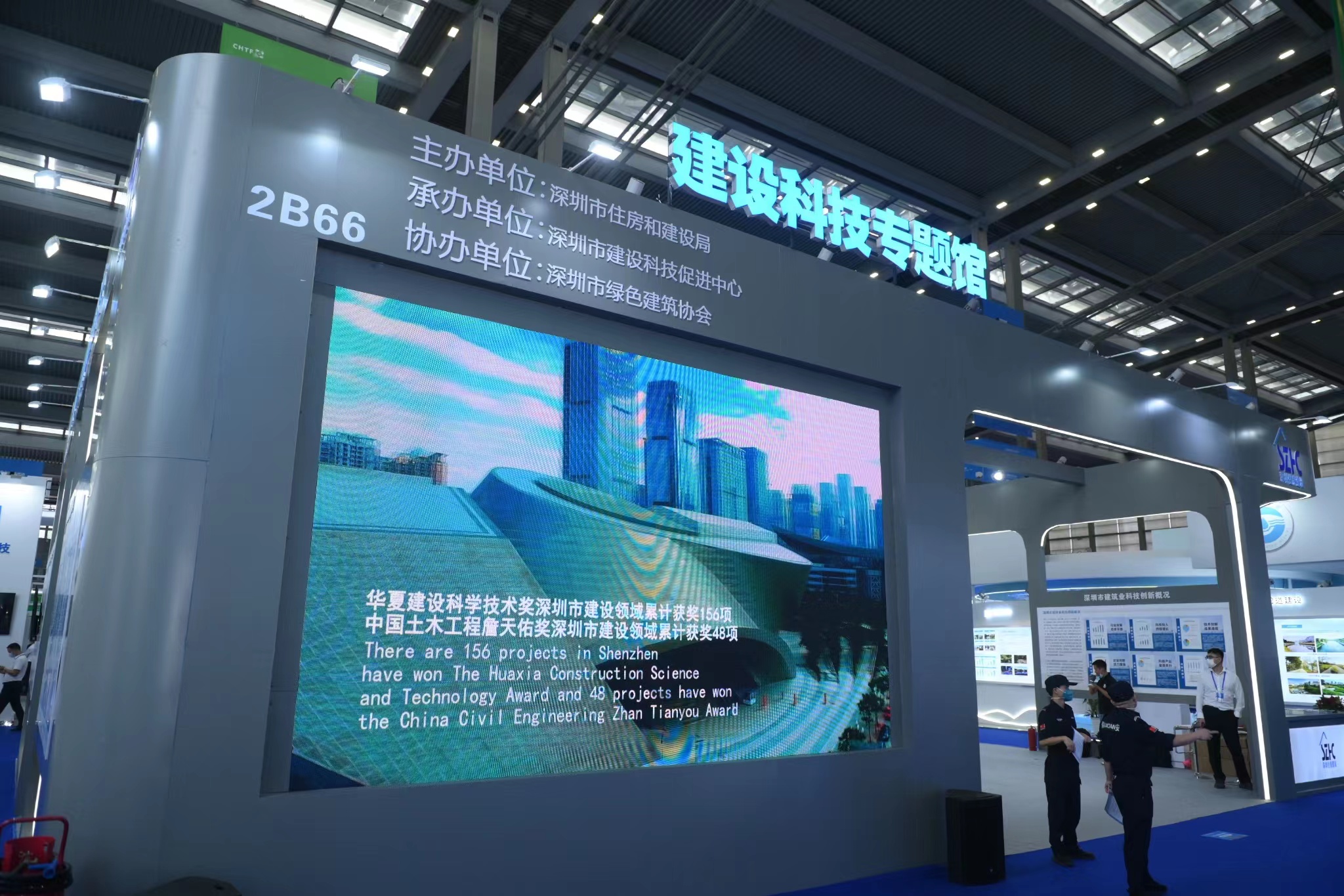 “建设科技专题馆”由深圳市住房和建设局主办,是建筑科技创新展的核心区域。展厅集中展示深圳市建筑业科技创新概况,分享深圳市在绿色化、新型工业化、智能化融合创新、深圳湾超级总部基地建设、大湾区城市建设、工程建设标准高质量与国际化发展以及深圳市工程勘察设计行业发展等方面的创新实践成果。