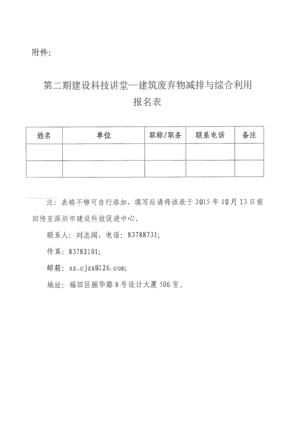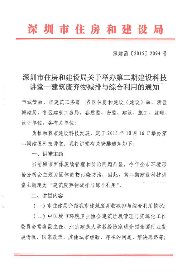 深圳市住房和建设局关于举办第二期建设科技讲堂-建筑废弃物减排与综合利用的通知