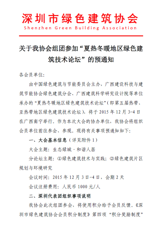 关于我协会组团参加“夏热冬暖地区绿色建筑技术论坛”的预通知