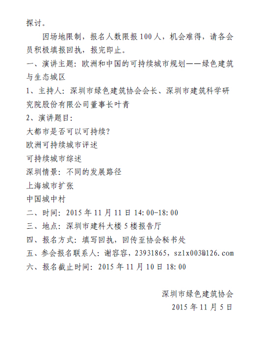 建科大讲堂之关于举办《欧洲和中国的可持续城市规划——绿色建筑与生态城区》讲座的邀请函