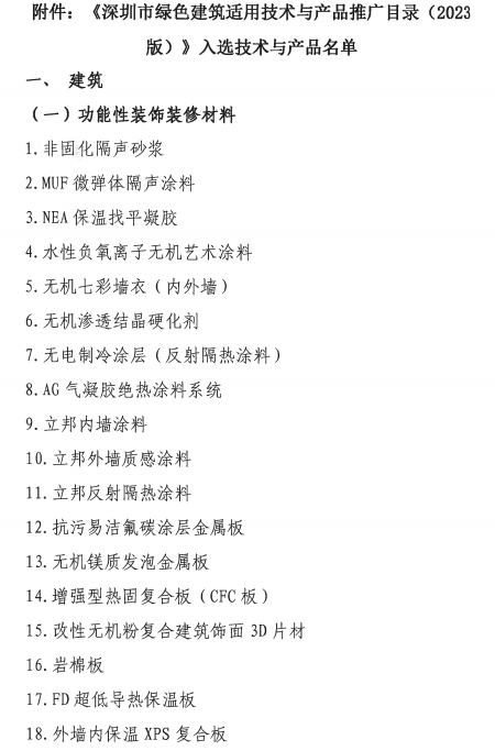《深圳市绿色建筑适用技术与产品推广目录(2023版)》入选技术与产品名单公告暨产品技术宣传彩页的征集通知