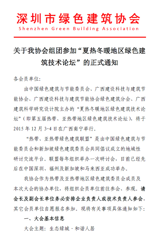 组团参加“夏热冬暖地区绿色建筑技术论坛”的正式通知