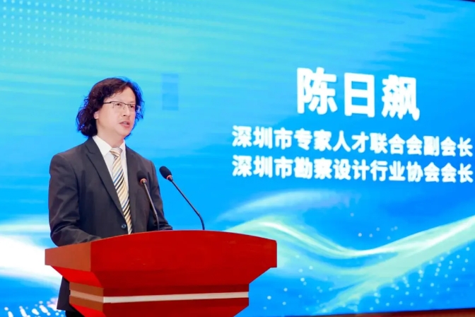 广东省工程勘察设计大师、深圳市勘察设计行业协会会长陈日飙宣读深圳经济特区工程勘察设计大师名单,并现场播放了22名大师的介绍视频。