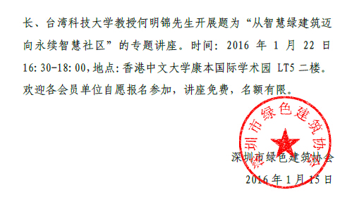 关于“从智慧绿建筑迈向永续智慧社区”讲座的通知