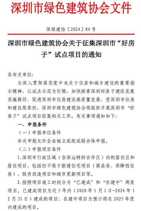 深圳市绿色建筑协会关于征集深圳市“好房子”试点项目的通知