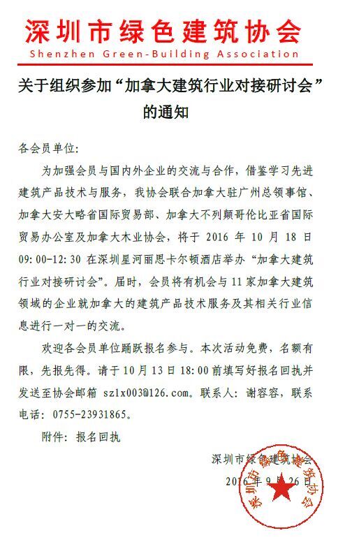 关于组织参加“加拿大建筑行业对接研讨会”的通知