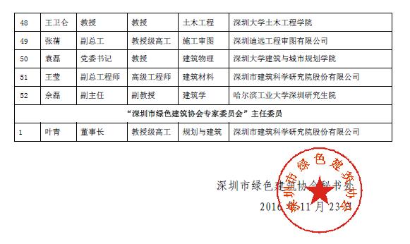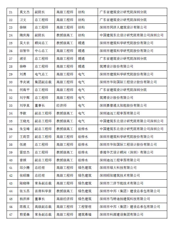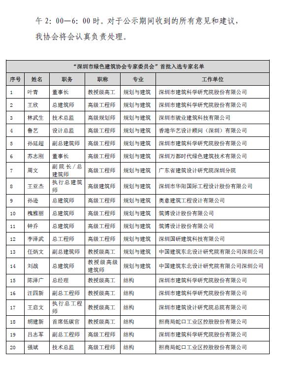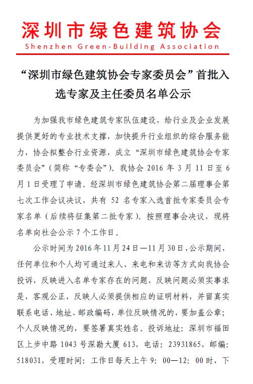 “深圳市绿色建筑协会专家委员会”首批入选专家及主任委员名单公示