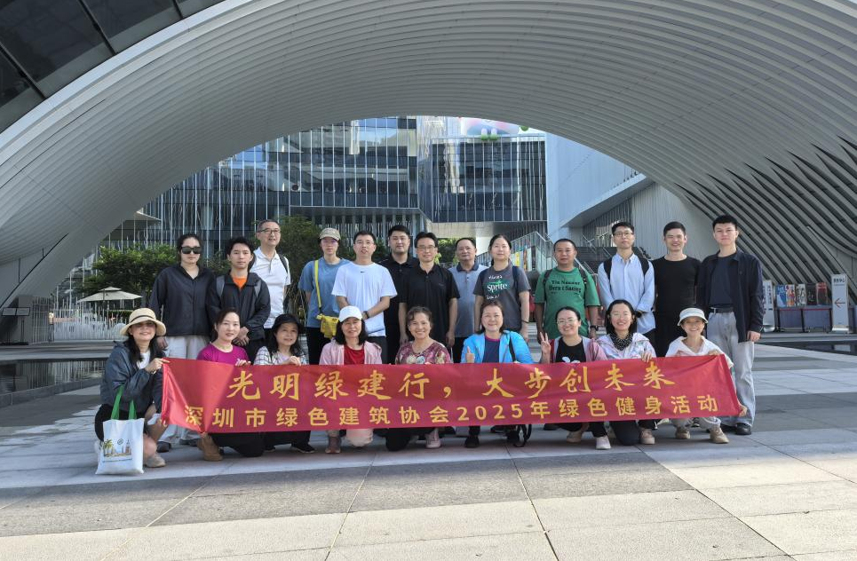 11月8日上午,深圳市绿色建筑协会2025年度绿色健身活动再次活力启程。本次活动以“光明绿建行,大步创未来”为主题,组织协会会员和行业专家走进绿色建筑集聚发展的光明区。本次活动自光明文化艺术中心出发,沿途探寻绿色建筑设计的初心与实践。大家漫步网红地标光明虹桥,尽览碧湖与大顶岭交相辉映的自然美景,在行走中感受绿色生态与建筑融合的魅力。