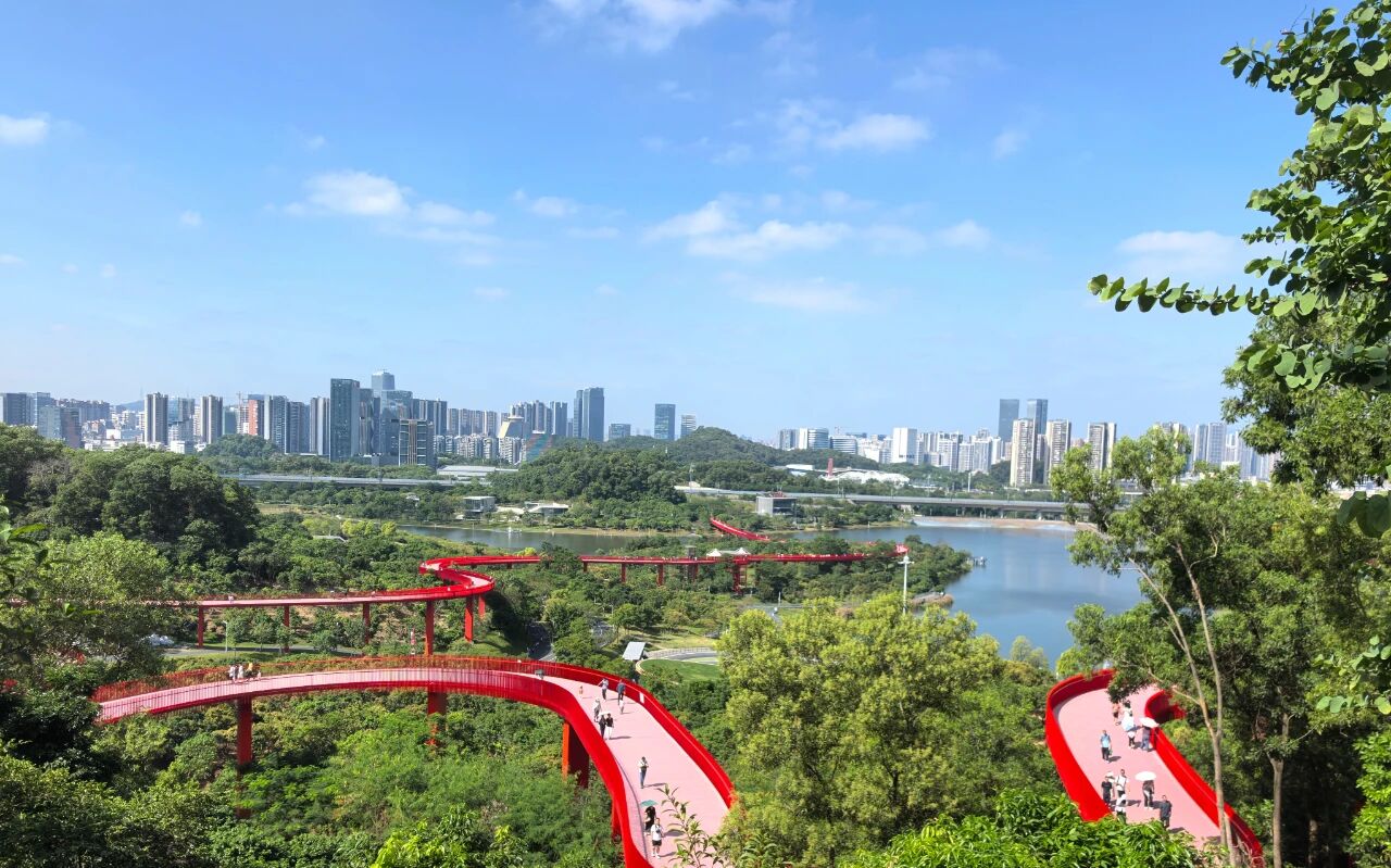 随后,大家漫步于光明虹桥公园。公园整体规划采用“一轴三区”布局,涵盖虹桥景观轴、入口运动区、碧湖运动区及森林运动区,不仅可俯瞰碧湖与大顶岭的自然美景,还可远眺光明中心区的城市天际线,自然与城市风貌交相辉映。日前,第十五届全国运动会自由式小轮车女子公园赛在此举行。