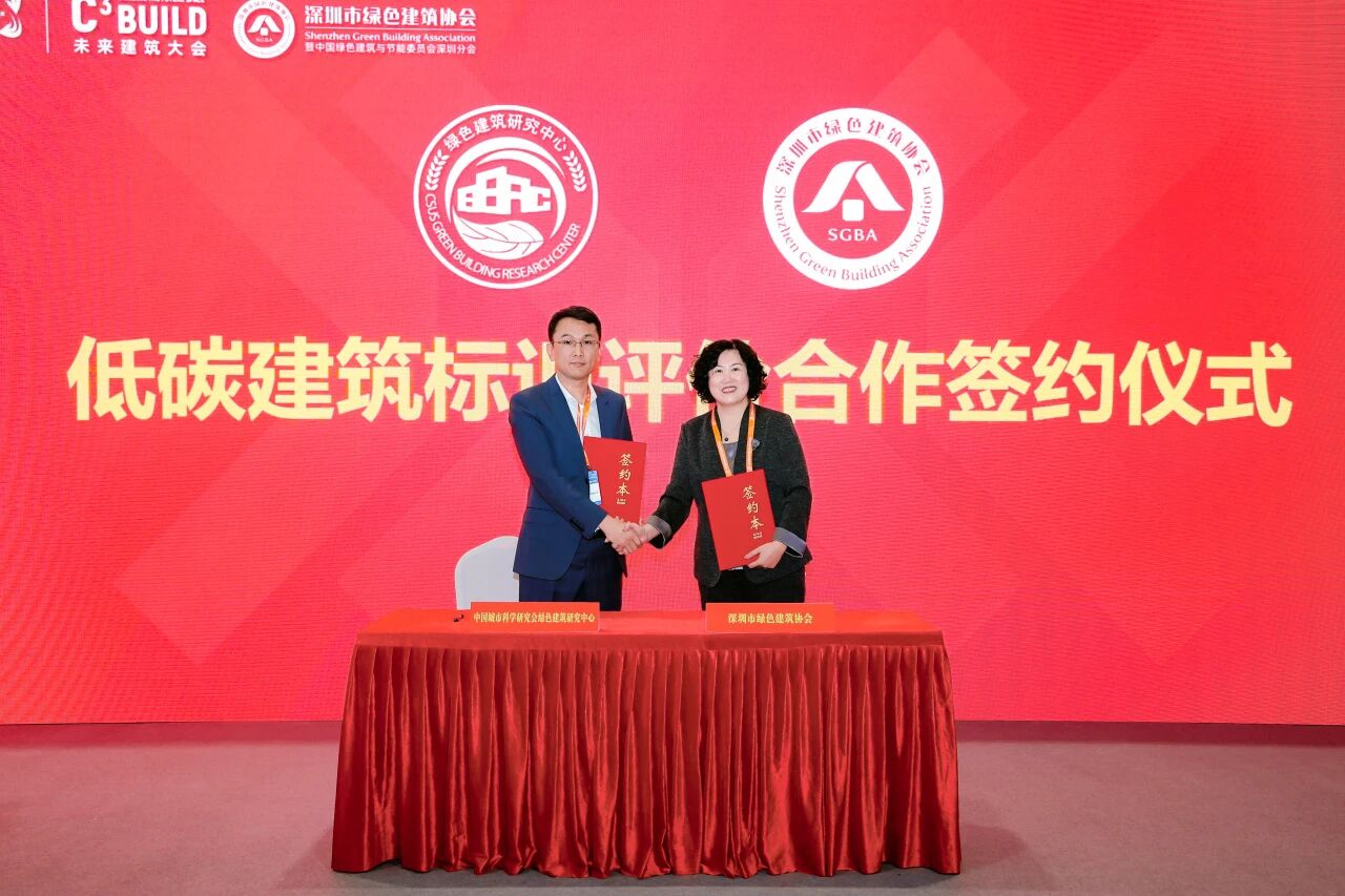 C3未来建筑大会期间,协会举办多项重要仪式——与中国城市科学研究会绿色建筑研究中心就低碳建筑标识评价合作进行签约;与德国可持续建筑委员会就可持续建设项目双认证合作进行签约;发布《深圳市绿色建筑行业适用技术与产品推广目录(2025版)》,并向入选企业代表颁发收录证书。