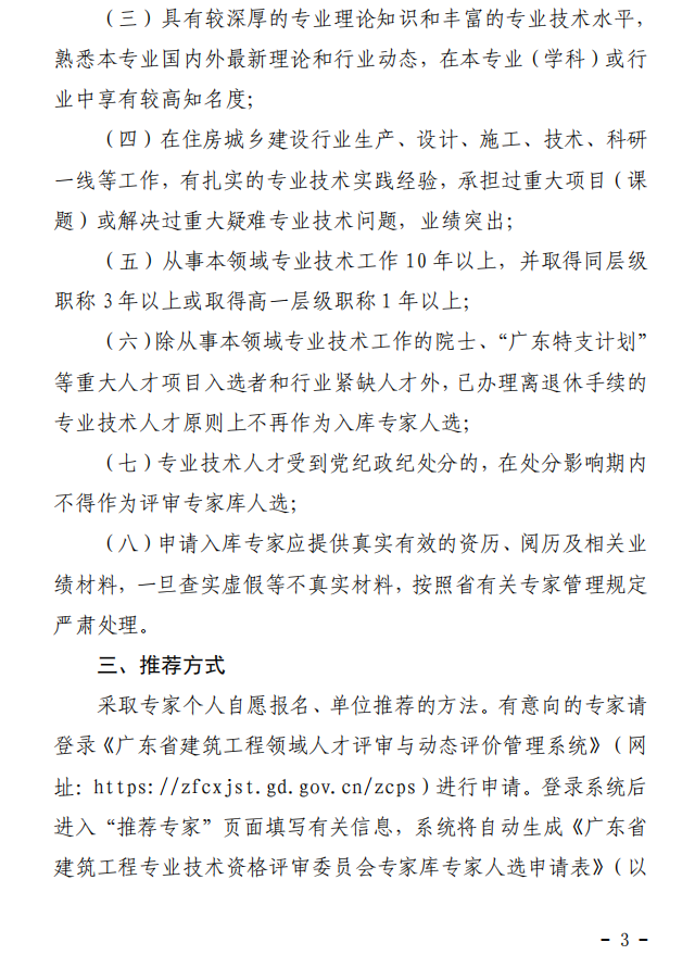 附件1:广东省住房和城乡建设厅关于征集建筑工程专业技术资格评审委员会专家的通知
