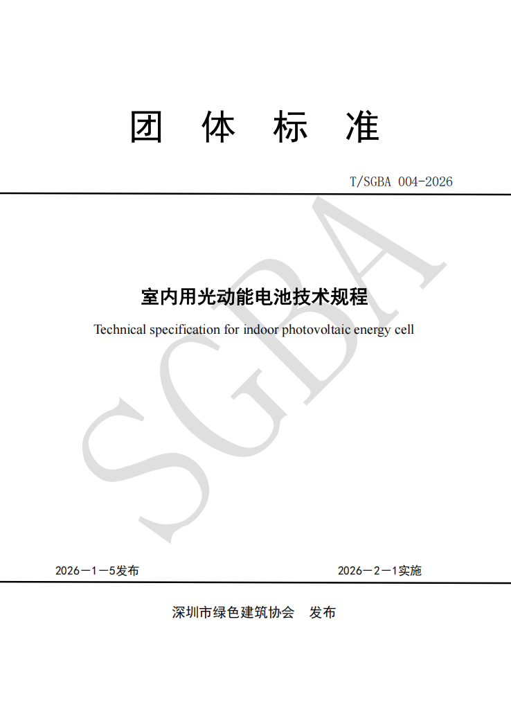 关于发布《室内用光动能电池技术规程》团体标准的公告