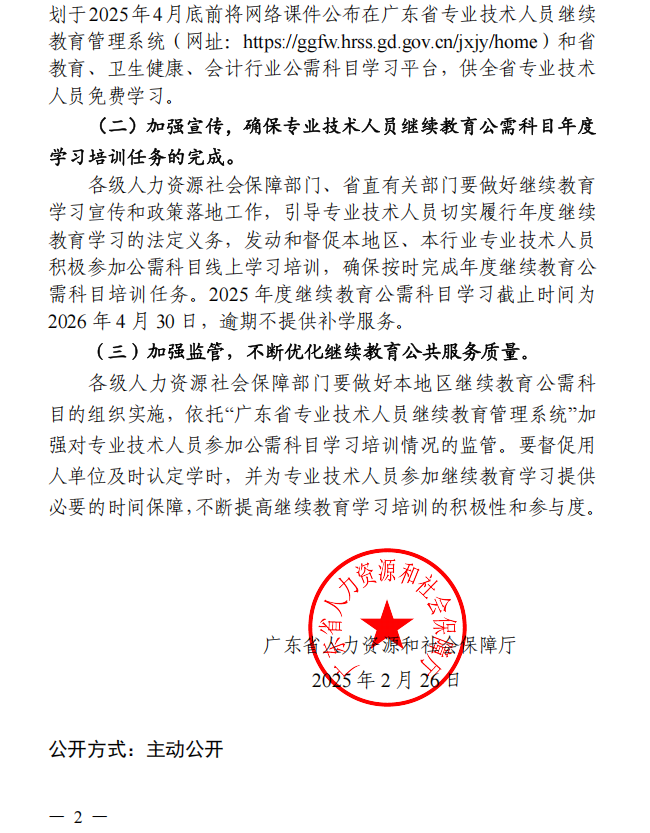 关于发布2025年度广东省专业技术人员继续教育公需科目学习指南的通知