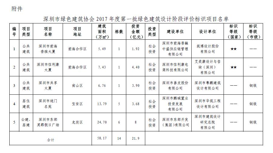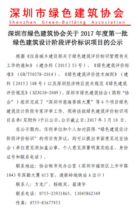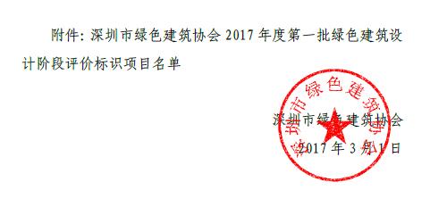关于2017年度第一批绿色建筑设计阶段评价标识项目的公示