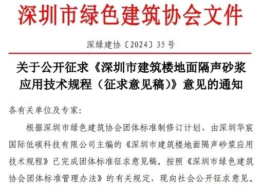 2026年1月5日,深圳市绿色建筑协会团体标准《建筑楼板隔声砂浆应用技术规程》(简称《标准》)发布,并于2026年2月1日起正式实施。