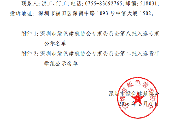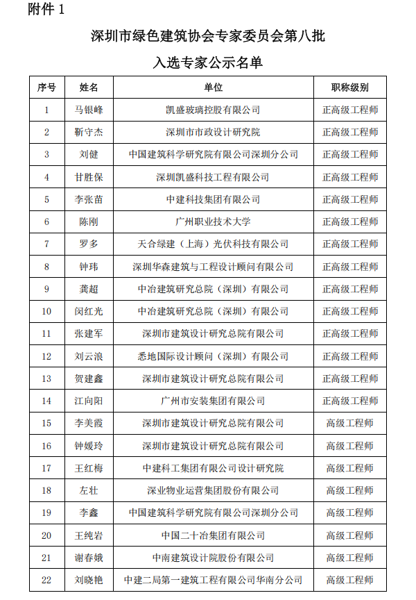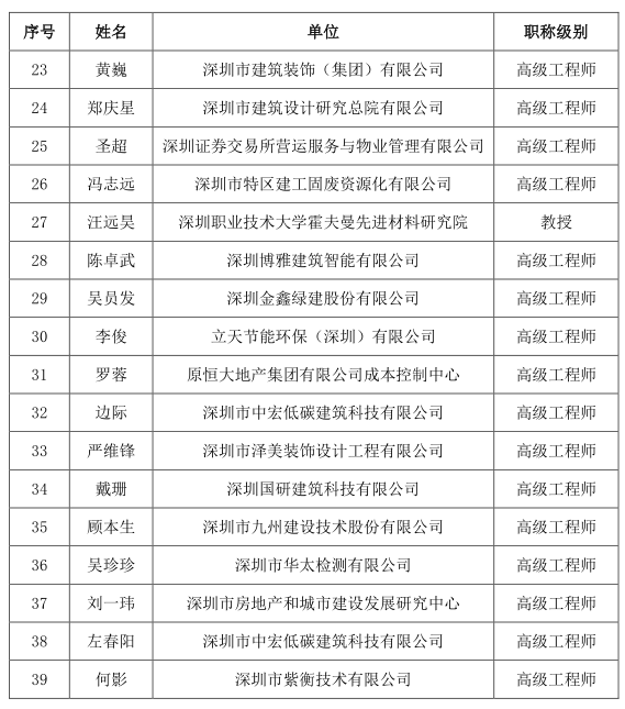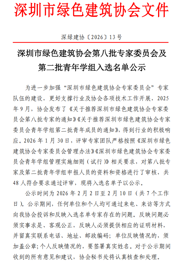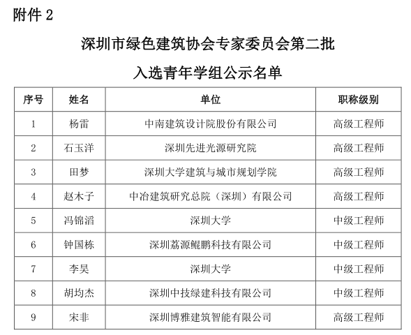 深圳市绿色建筑协会第八批专家委员会及第二批青年学组入选名单公示