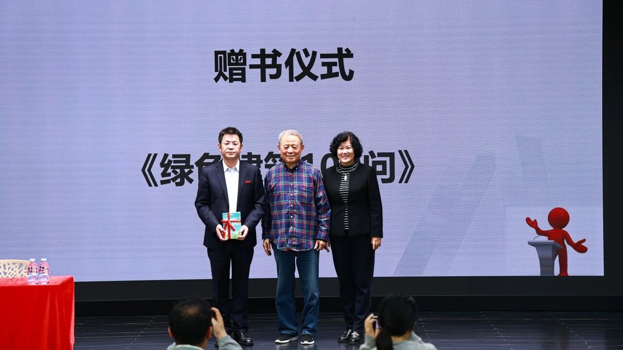 中国城科会绿建委主任王有为作《绿色低碳国策的解读》主题报告,并携手深圳市绿色建筑协会共同向深圳实验学校(高中园)总校长李震宇(照片左一)赠送书籍《绿色建筑100问》