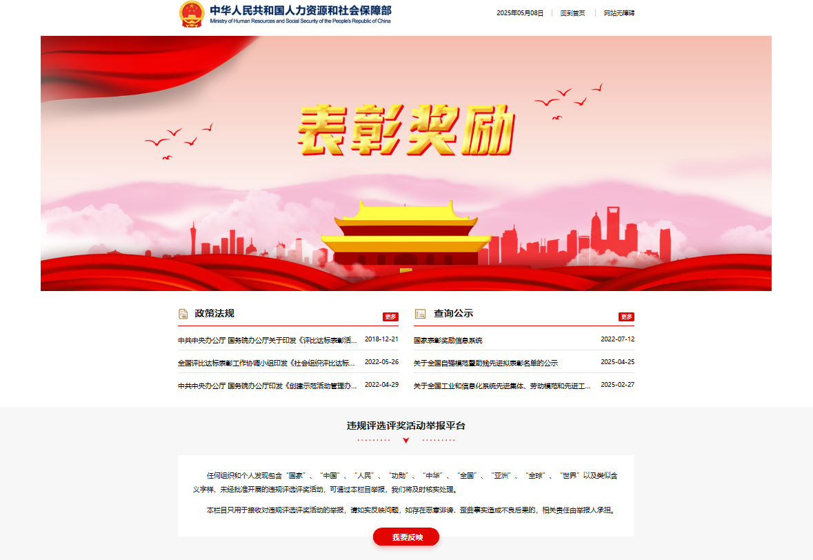 “表彰奖励”专栏网站:https://www.mohrss.gov.cn/SYrlzyhshbzb/rdzt/bzjl/