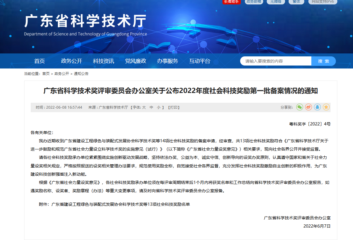 2022年度社会科技奖励第一批备案情况的通知https://gdstc.gd.gov.cn/zwgk_n/tzgg/content/post_3946454.html