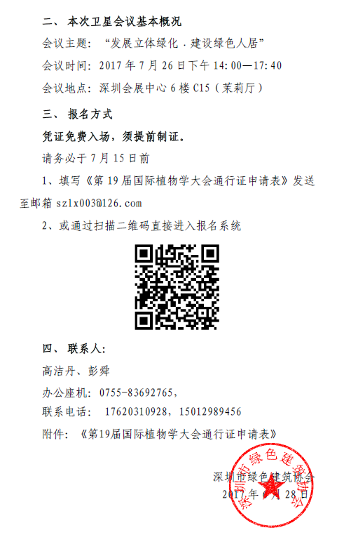 关于参加“第十九届国际植物学大会卫星会议之发展立体绿化·建设绿色人居”报名通知