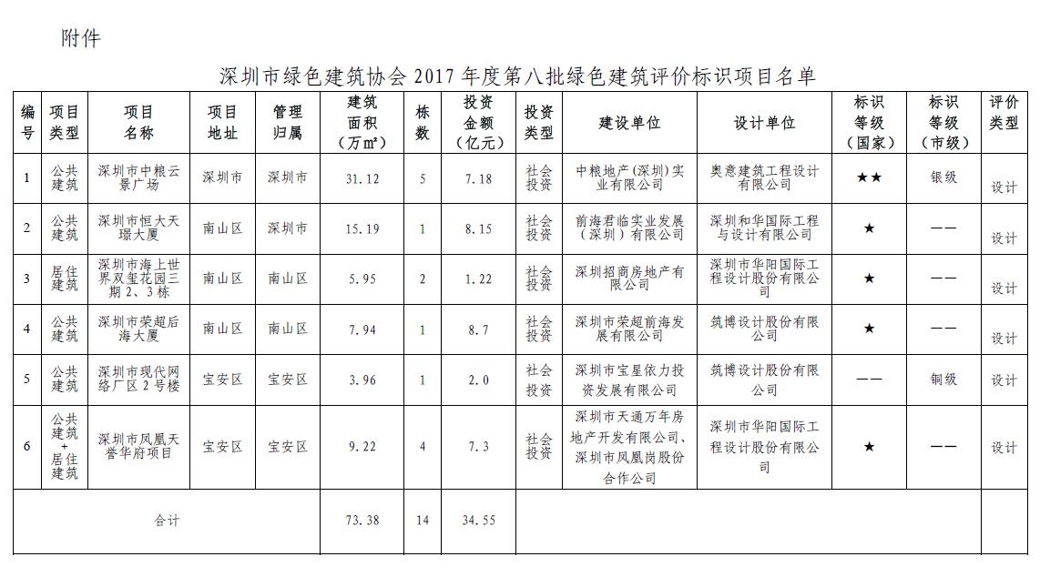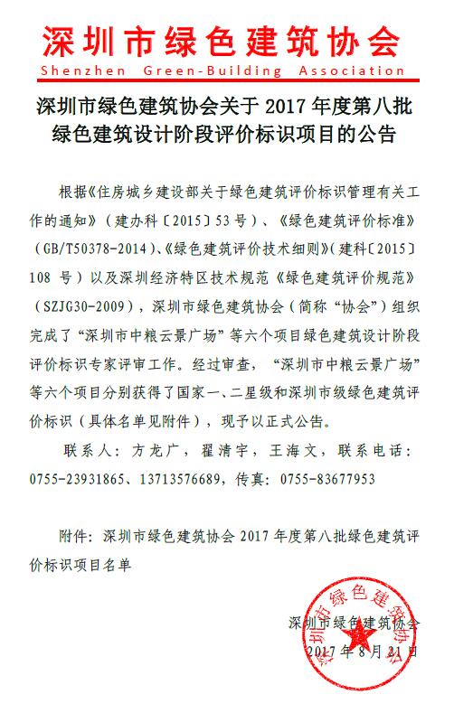 关于2017年度第八批绿色建筑设计阶段评价标识项目的公告