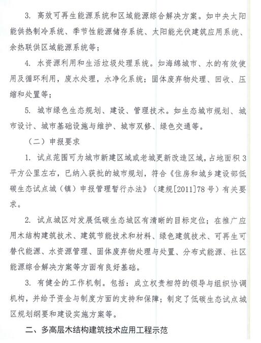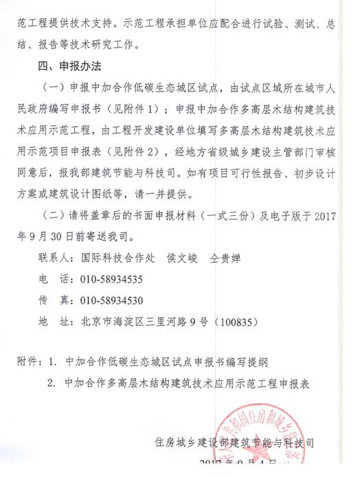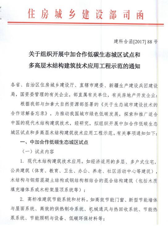 转住建部《关于组织开展中加合作低碳生态城区试点和多高层木结构建筑技术应用工程示范的通知》
