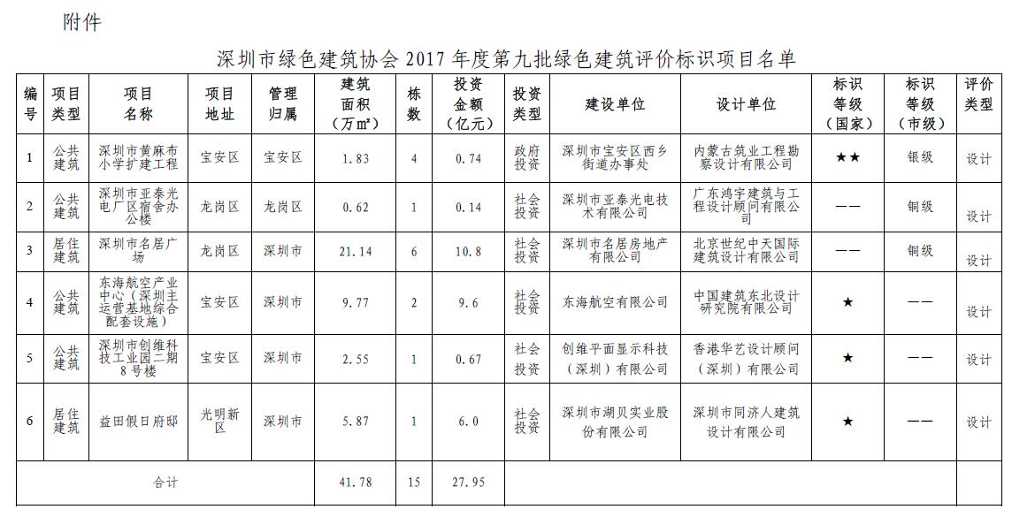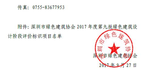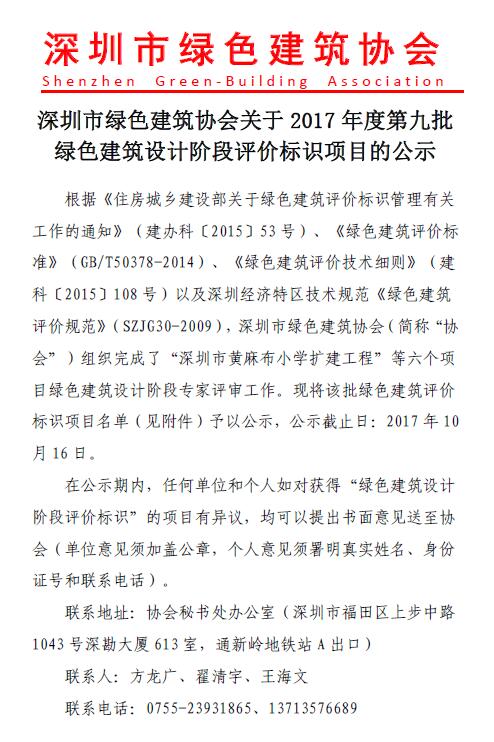 关于2017年度第九批绿色建筑设计阶段评价标识项目的公示