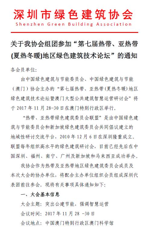 关于我协会组团“第七届热带、亚热带(夏热冬暖)地区绿色建筑技术论坛”的通知