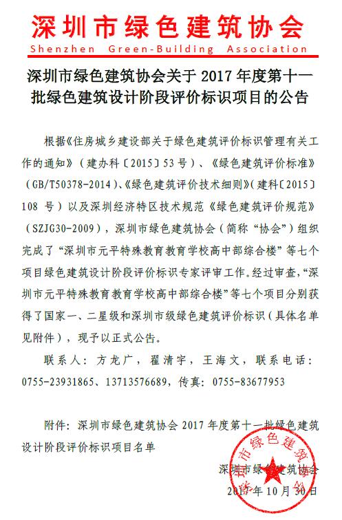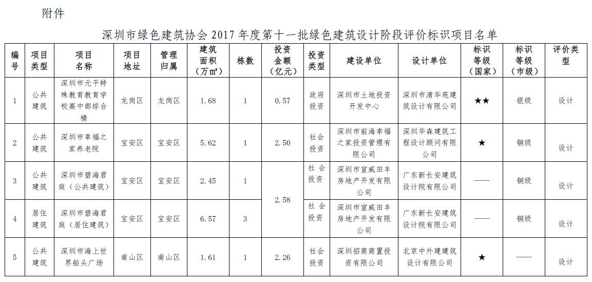 关于2017年度第十一批绿色建筑设计阶段评价标识项目的公告