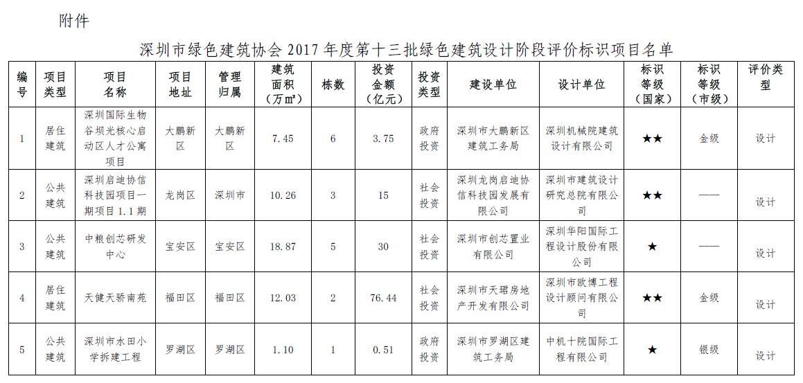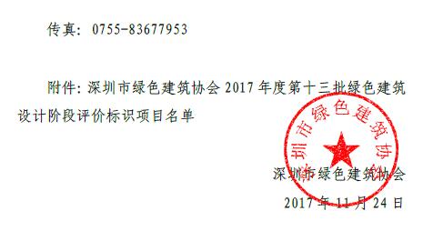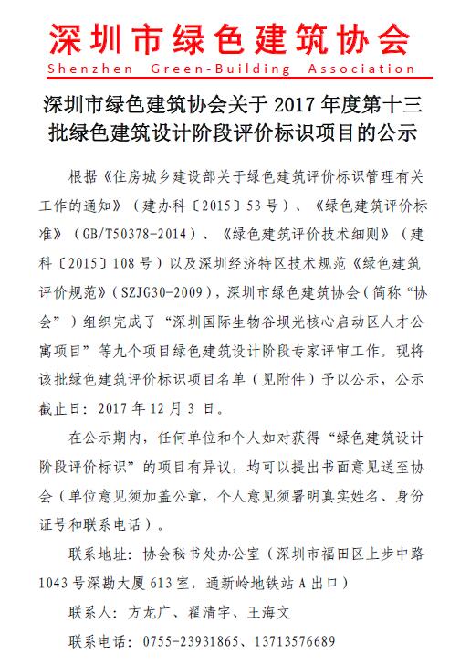 关于2017年度第十三批绿色建筑设计阶段评价标识项目的公示