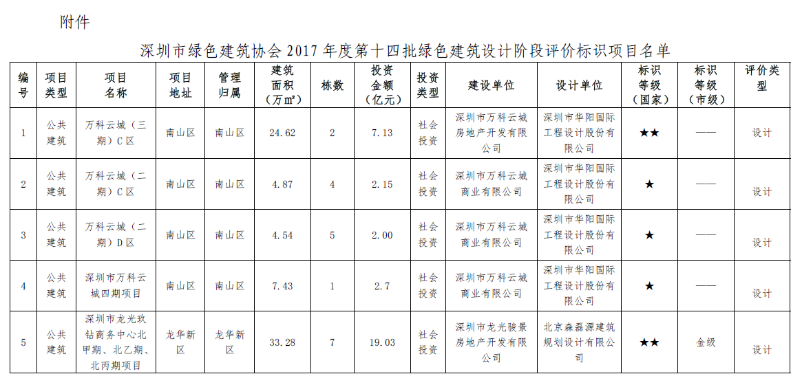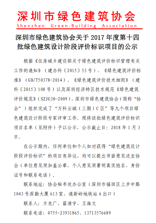 关于2017年度第十四批绿色建筑设计阶段评价标识项目的公示
