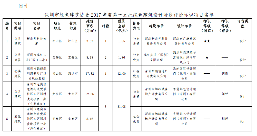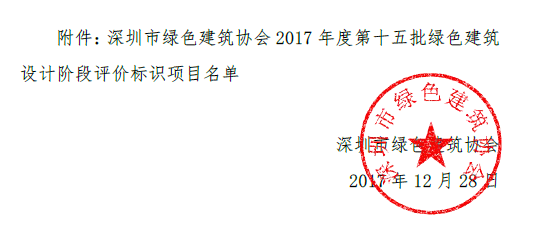 关于2017年度第十五批绿色建筑设计阶段评价标识项目的公示