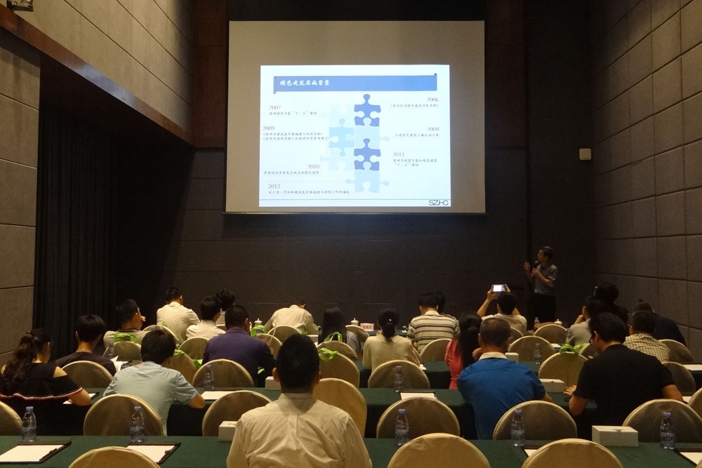 培训还围绕绿色建筑发展的热点话题——海绵城市以及新型建材,由深圳市骏业建筑科技有限公司技术总监齐杰分享了海绵城市及绿色施工技术要点,由深圳市华阳绿色建筑节能有限公司王海波总工介绍了新型绿色建材——“建筑隔声砂浆”。