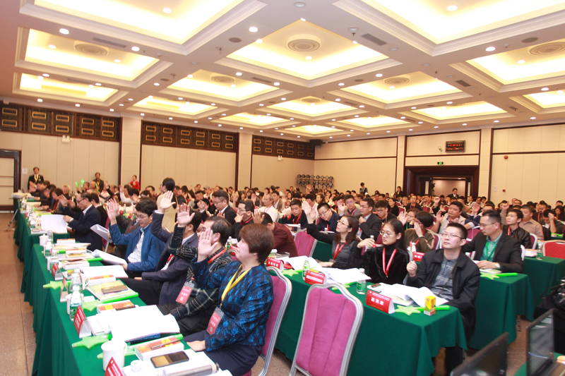 与会代表就协会新《章程》、《会员大会选举办法》、《监票、计票、唱票人员名单》、《第三届理事会、监事会侯选单位名单》等内容进行举手表决。