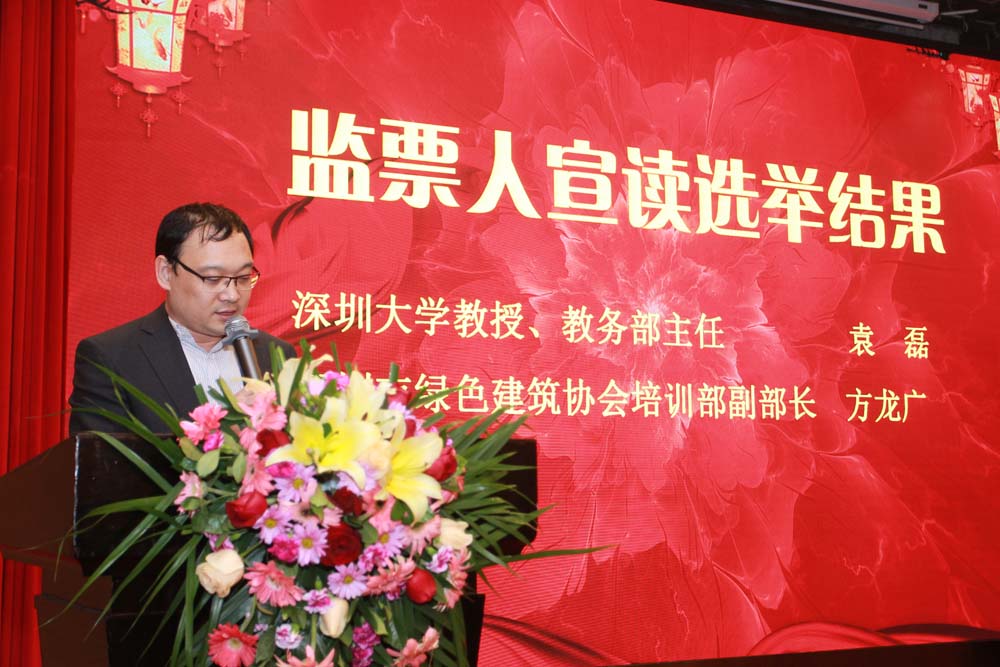 深圳市住房和建设局高尔剑副局长到会讲话,对协会工作进行了肯定并给予期盼。他表示,自协会成立以来,围绕深圳建筑领域绿色低碳发展,做了大量开创性工作,对促进深圳经济和节能减排目标实现发挥了重要作用。尤其是过去的一年,协会的各项工作更上一层楼,充分发挥了政府与企业之间的桥梁作用。对即将诞生的协会新任会长和新一届理事会,高局提出了几点要求:1.主动作为、提前谋划;2.增量扩面、提质升级;3.做出亮点、打造特色;4.提升能力、共同发展。他希望全体会员在新任会长和新一届理事会的带领下,不忘创会初心,继续为绿色事业做出贡献。